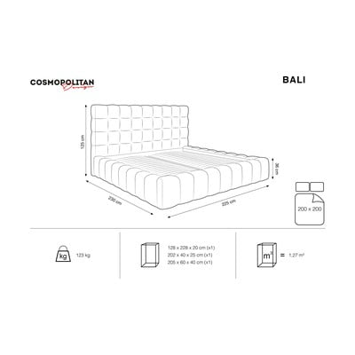 Szürke kárpitozott franciaágy tárolóhellyel, ágyráccsal 200x200 cm Bali – Cosmopolitan Design