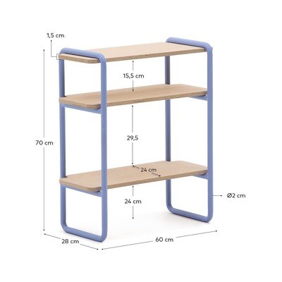 Tinn gyerek könyvespolcFüggő, kőrisfa dekorral, furnér, felületkezelés: porlakkozás, világoskék-natúr színű, szélesség 60 cm, magasság 70 cm, mélység 28 cm