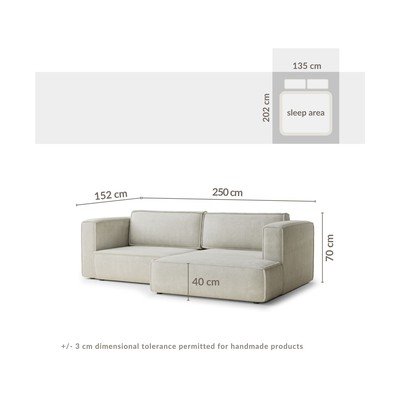 ZseníliaKinyitható-tárolóhelyesJobb oldali-heverő résszelVilágoskékHáromszemélyesSzélesség 250 cmMélység 152 cmÜlésmélység 65 cm