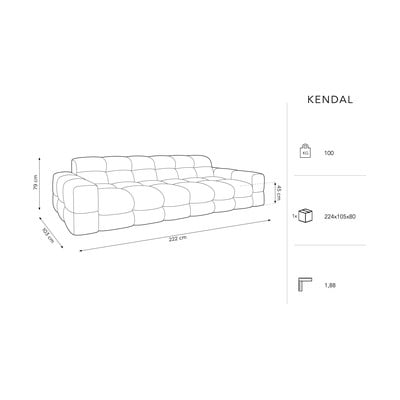 Ismerd meg a kényelmet a Kendal kanapéval! A bársonyos huzat nagyon puha és sima felületű. Nagyszerű tartósságának köszönhetően még a kisállat tulajdonosok is értékelni fogják ezt a modern darabot.