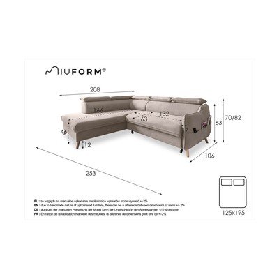 BársonyÁllítható-kinyithatóBal oldali-L alakúVízlepergető-háziállatbarátVilágosszürkeNégyszemélyesSzélesség 253 cmMélység 208 cmÜlésmélység 63 cm