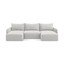 Kalena sarokkanapéBársony, kinyitható-tárolóhelyes, jobb oldali-heverő résszel, világosszürke, háromszemélyes, szélesség 244 cm, mélység 149 cm, ülésmélység 70 cm