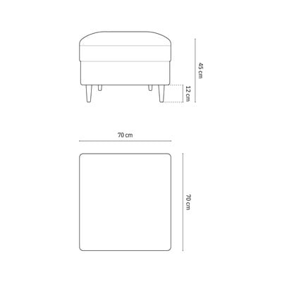 Bársony, világosszürke, szélesség 70 cm, mélység 70 cm, magasság 45 cm