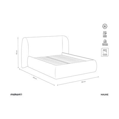 Szürkésbarna kárpitozott ágyneműtartós franciaágy ágyráccsal 140x200 cm Hauke – Makamii