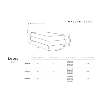 A Mazzini Beds márka Lostus ágyán nagyra fogod értékelni a modern designt és a magas fejtámlát, ami kiemelkedik a belső térben. A konstrukciót bükkfa lábak egészítik ki. Az ágyhoz egy 90 x 200 cm méretű rács és matrac is tartozik. Így mindened meglesz a minőségi alváshoz.