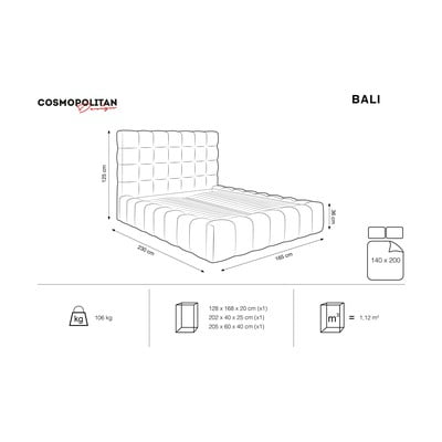 Bézs kárpitozott franciaágy tárolóhellyel, ágyráccsal 140x200 cm Bali – Cosmopolitan Design