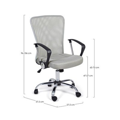 Kárpitozott, gurulós-állítható magasságú-karfás, világosszürke, terhelhetőség 110 kg, ülésmagasság 57-57 cm