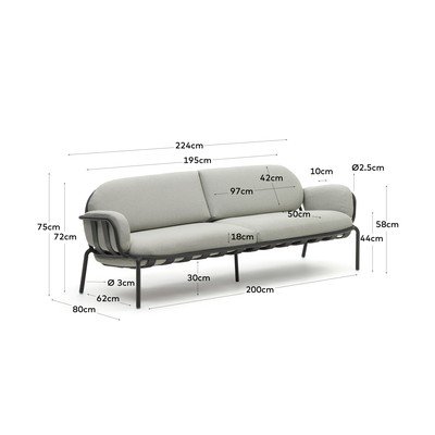 HáromszemélyesVilágosszürkeTerhelhetőség 300 kgSzélesség 224 cmMagasság 72 cmMélység 80 cm