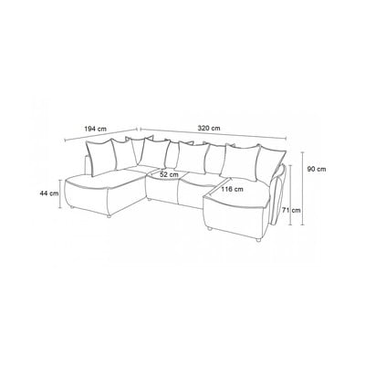 Kinyitható-tárolóhelyesJobb oldali-heverő résszelVilágosszürkeÖt- és többszemélyesSzélesség 320 cm