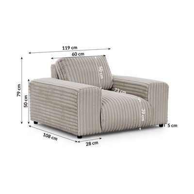 Világosszürke kordbársony fotel Justin – Ropez