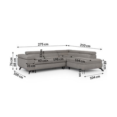 ZseníliaÁllítható-kinyitható-tárolóhelyesJobb oldali-L alakúVilágosszürkeHáziállatbarát-foltállóNégyszemélyesSzélesség 275 cm