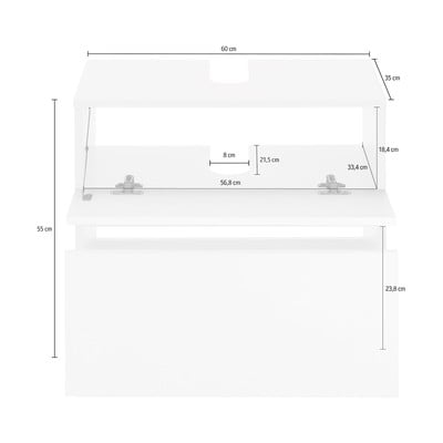 MDF, felületkezelés: fólia, matt dekorral, fehér, szélesség 60 cm, magasság 55 cm, mélység 35 cm