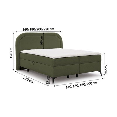 180x200 cm, ágyneműtartós, kárpitozott, matraccal-topper fedőmatraccal, buklé, zöld
