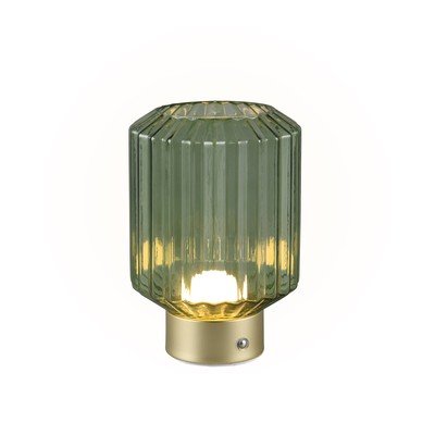 LED, dimmelhető, üveg búrával, fém-üveg, USB, zöld-aranyszínű, magasság 19,5 cm