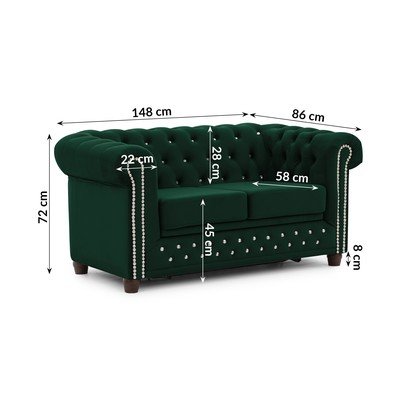 Bársony, kinyitható, chesterfield, zöld, vízlepergető-foltálló, kétszemélyes, szélesség 148 cm