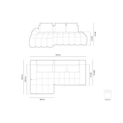 Bársony, kinyitható-tárolóhelyes, bal oldali-heverő résszel, zöld, négyszemélyes, szélesség 275 cm