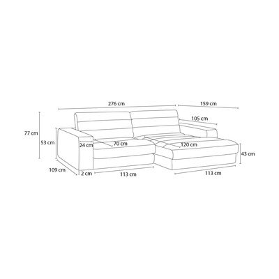 Bársony, jobb oldali-heverő résszel, zöld, négyszemélyes, szélesség 276 cm