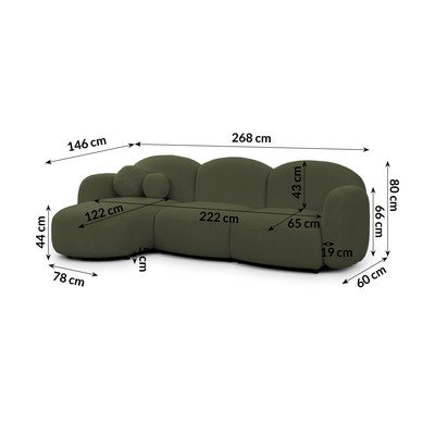 Zöld buklé sarokkanapé (jobb oldali-heverő résszel) Orbit – Ropez