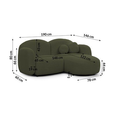 Zöld buklé sarokkanapé (jobb oldali-heverő résszel) Orbit – Ropez