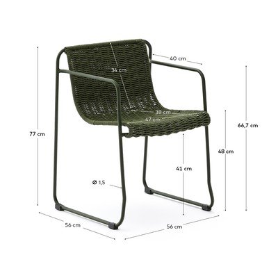 A Maurina kerti széket a Yonoh stúdió tervezte kifejezetten a Kave Home márkának. Az ülőfelület és a háttámla kézzel szőtt, UV-álló zsinórból készült, ami hosszú élettartamot garantál még gyakori kültéri használat mellett is.