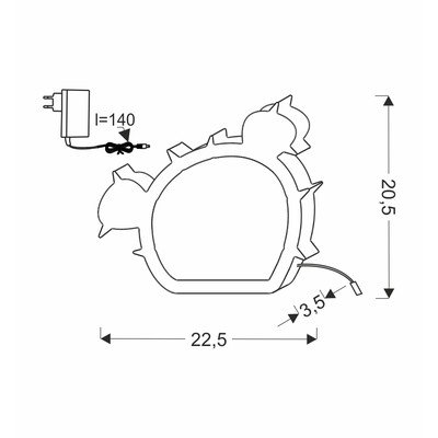 FaKonnektorhoz csatlakoztathatóLEDSzélesség 3,5 cmHosszúság 22,5 cmMagasság 20,5 cm