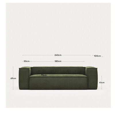 Zöld kordbársony kanapé 240 cm Blok – Kave Home
