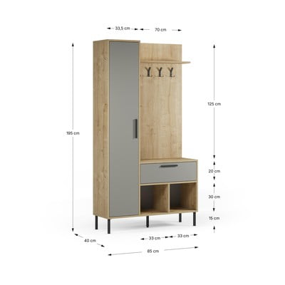 Krémszínű-natúr színű előszoba bútor tölgyfa dekorral 108x195x35 cm Heidy – Marckeric
