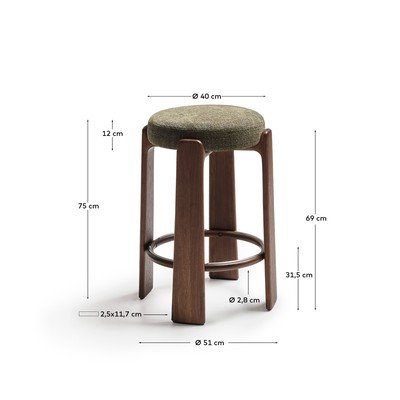 Kényelmes kerek ülőfelülete kétszínű zsenília huzattal van kárpitozva, amely jellegzetes textúrával rendelkezik. Az anyag újrahasznosított poliészterből készült, egy Global Recycled Standard tanúsítvánnyal rendelkező beszállítótól, ami alacsonyabb erőforrás- és primeranyag-felhasználást biztosít. Ráadásul OEKO-TEX® STANDARD 100 tanúsítvánnyal is rendelkezik, amely környezetbarát és felelős gyártást garantál.