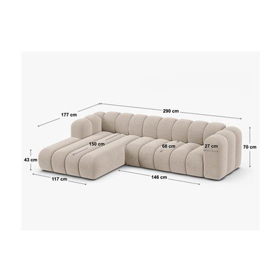 Bézs zsenília sarokkanapé (jobb oldali-heverő résszel) Lupine – Micadoni