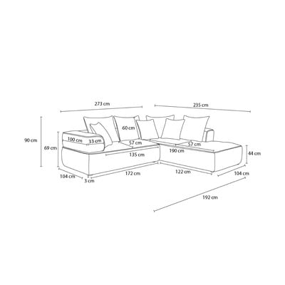 Bézs zsenília sarokkanapé (jobb oldali-L alakú) Whesley – Bobochic Paris