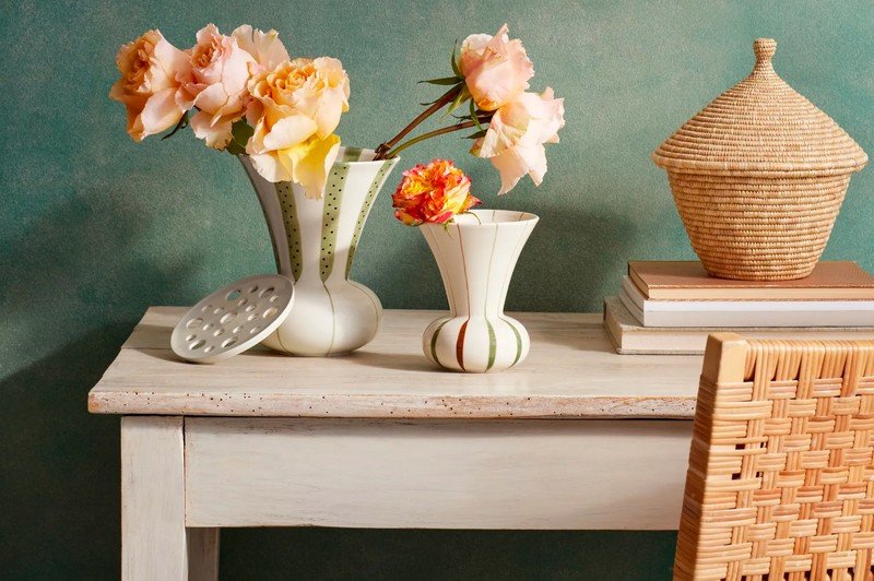 Kézzel festett, kőedény, fehér-zöld, ø 16 cm, magasság 20 cm